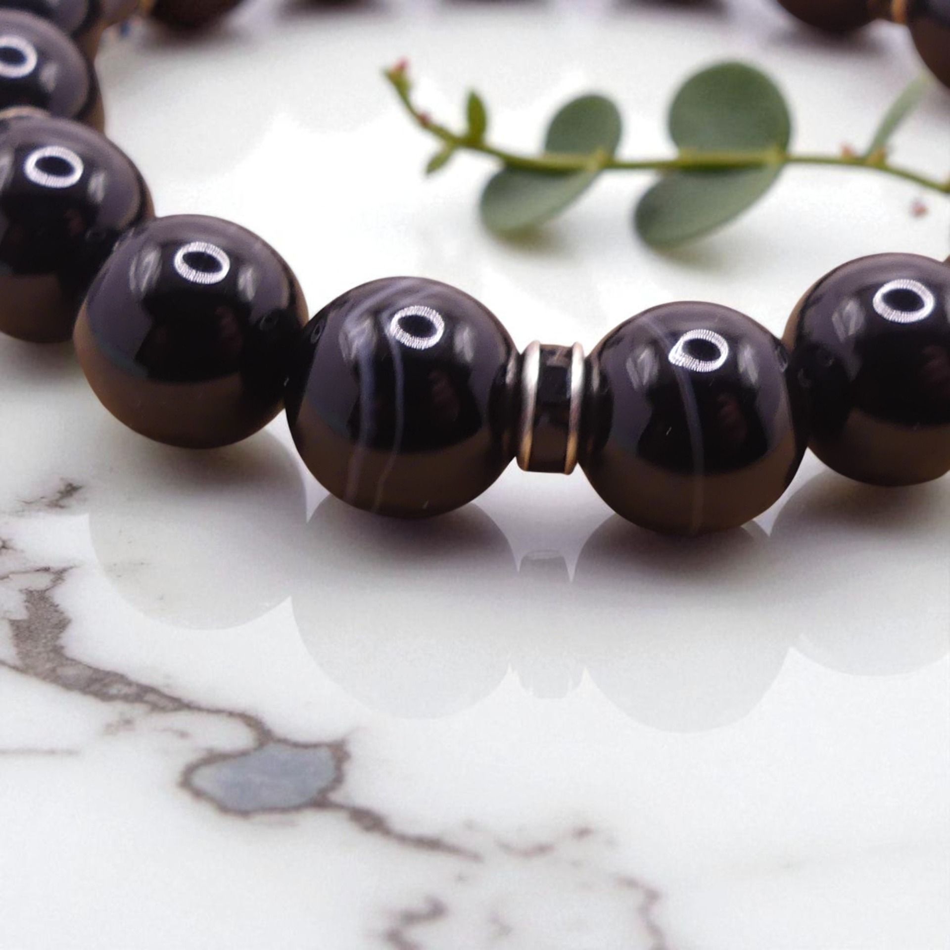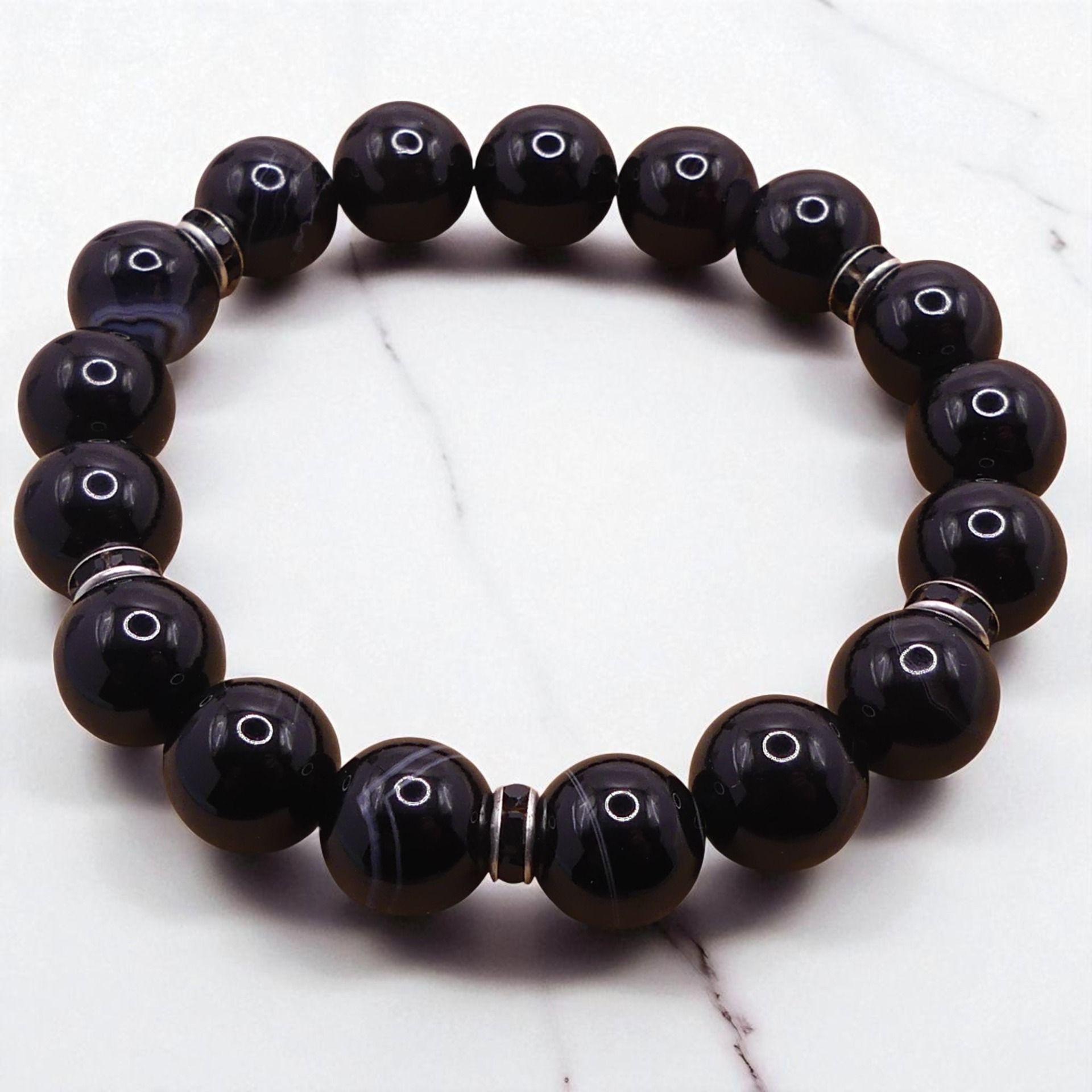 Ce bracelet en Obsidienne - Agate sera un puissant allié pour augmenter le manque de vitalité et d'ancrage.