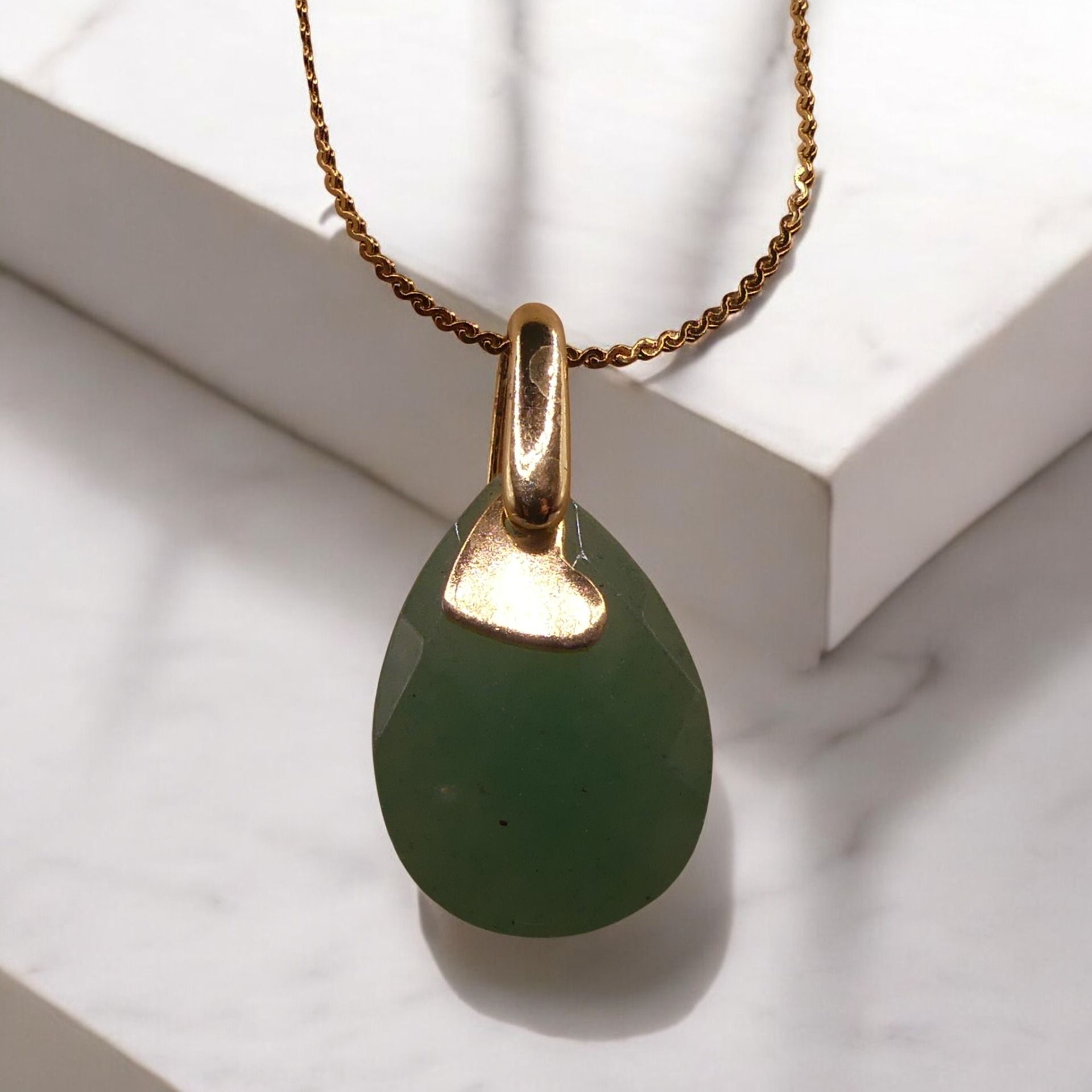 Habillez votre décolleté avec style et élégance grâce à ce sublime collier constitué d'une pierre semi-précieuse d'Aventurine en forme de coeur encerclée par un Arbre de Vie couleur doré du plus bel effet.
