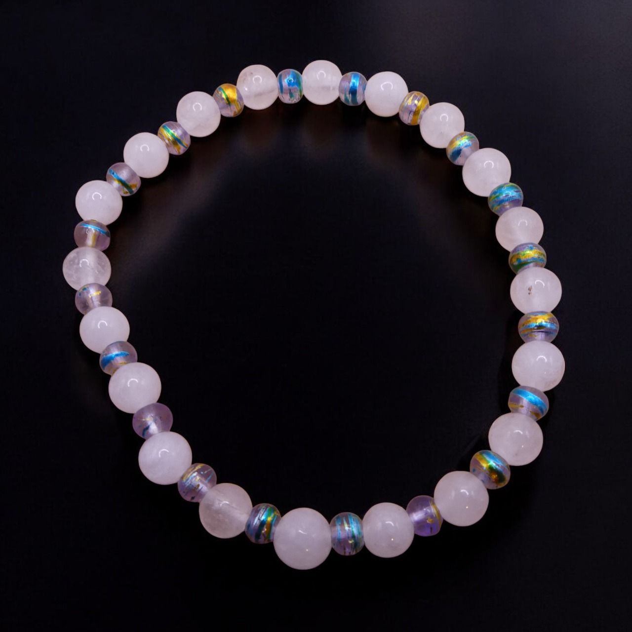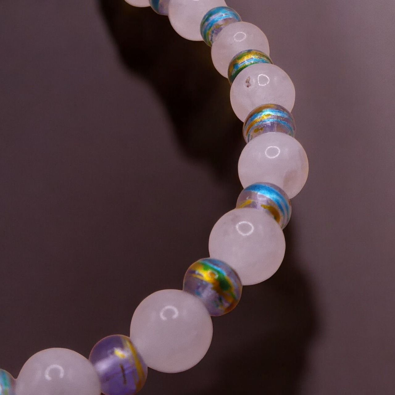 Ce bracelet en perles ronde 6 mm de diamètre est monté sur un fil élastique résistant.