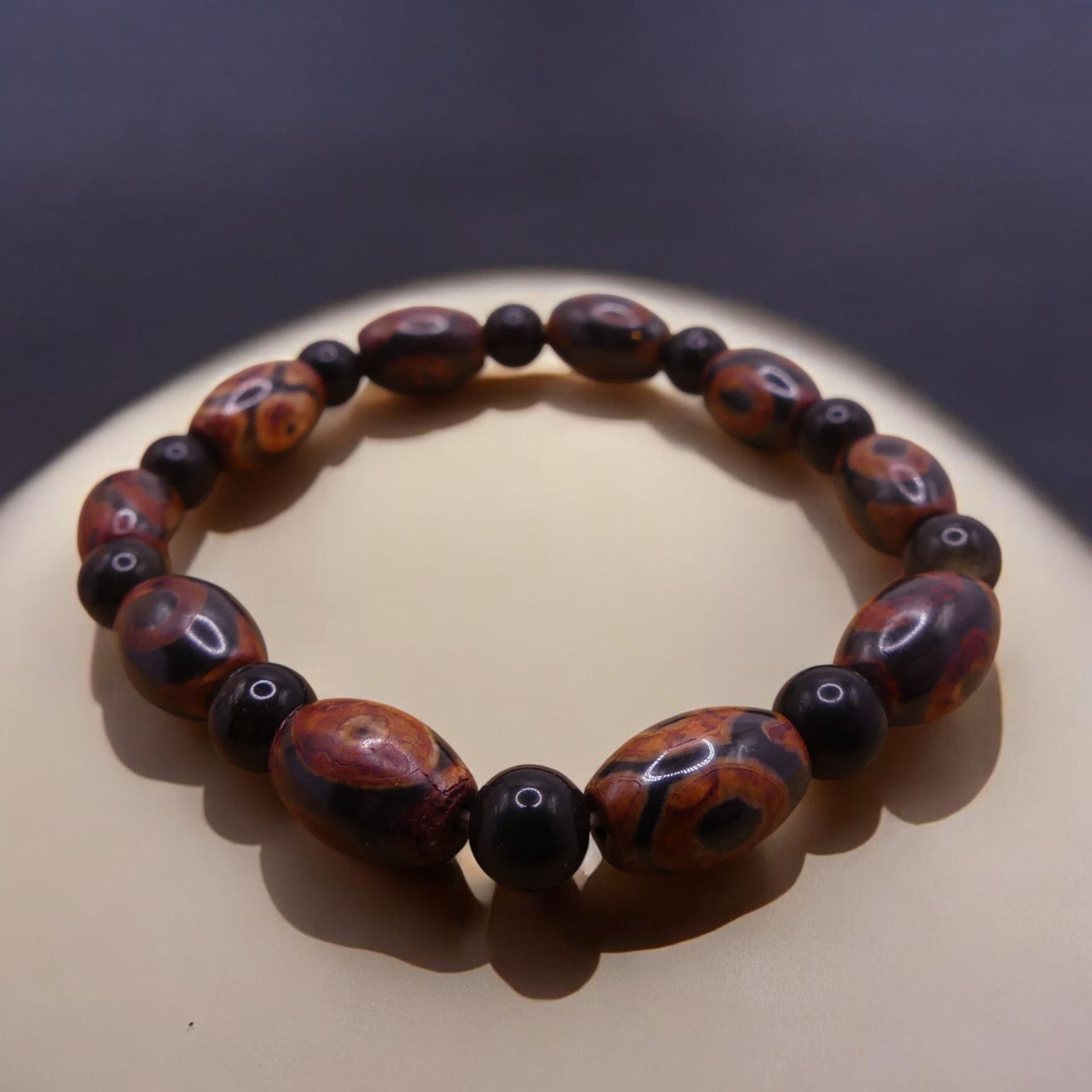 Ce bracelet en perles ronde 8 mm de diamètre est monté sur un fil élastique résistant.