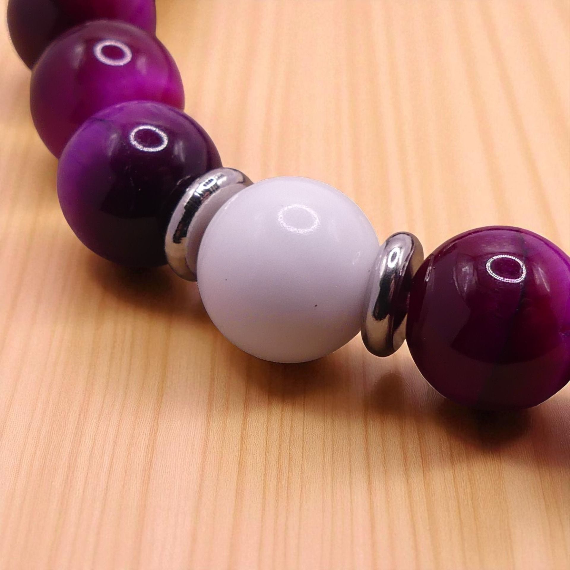 Ce bracelet en perles ronde 8 mm de diamètre est monté sur un fil élastique résistant.
