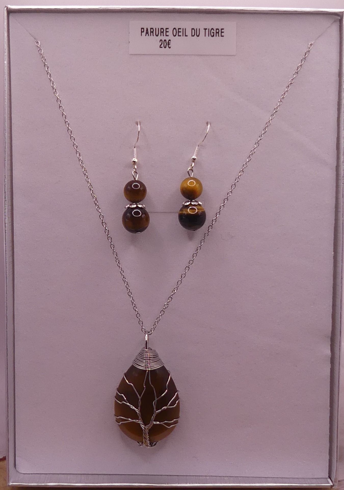 Succombez à cette parure composée de très élégantes boucles d'oreilles et d'un collier fabriqués artisanalement à partir de pierre naturelle d'Oeil de Tigre. Elles seront d'une aide précieuse pour apporter ses bienfaits tout au long de votre journée.