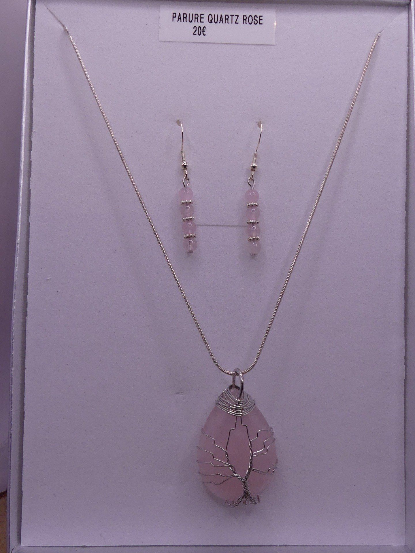 Succombez à cette parure composée de très élégantes boucles d'oreilles et d'un collier fabriqués à partir de pierre naturelle de Quartz Rose. Elles seront d'une aide précieuse pour apporter ses bienfaits tout au long de votre journée.