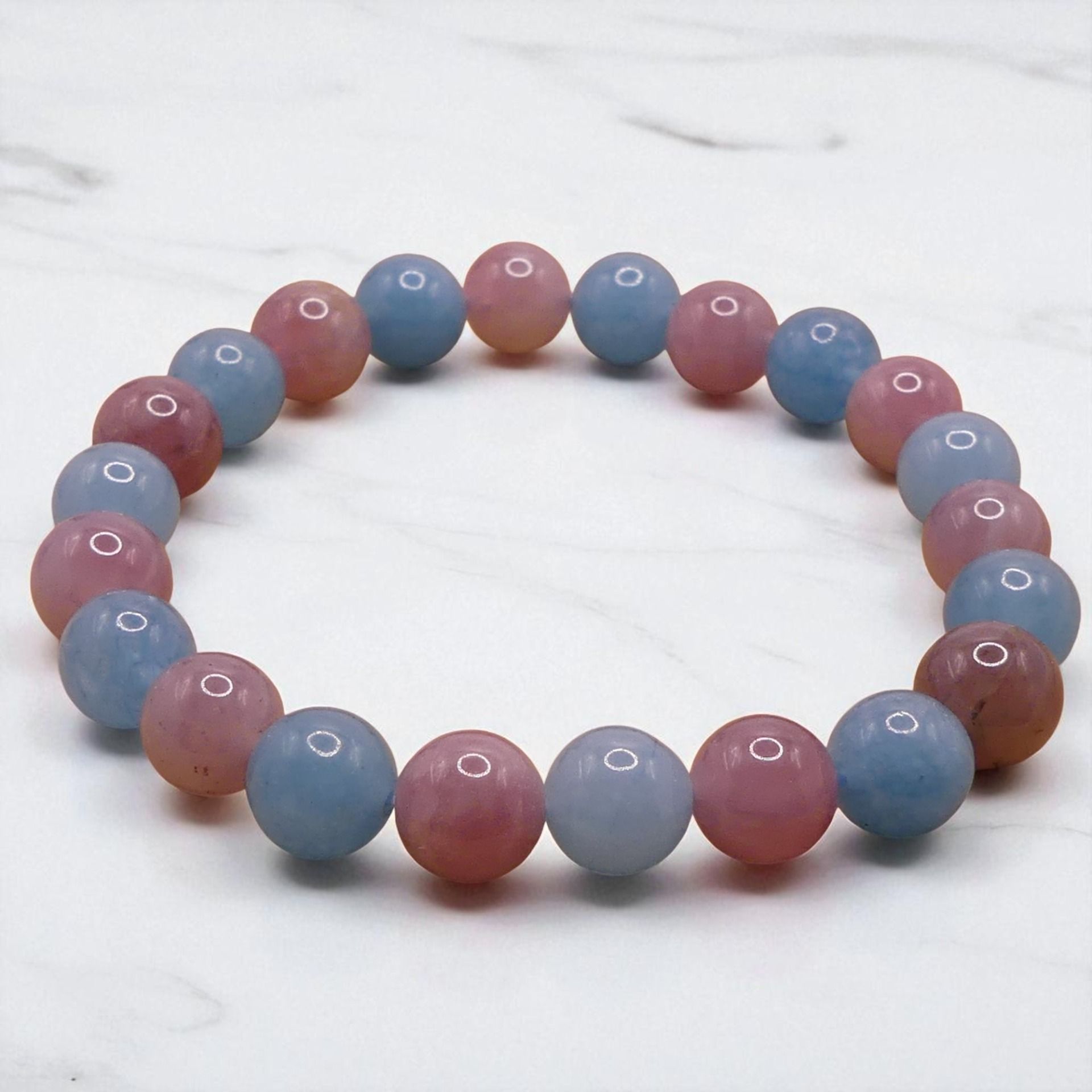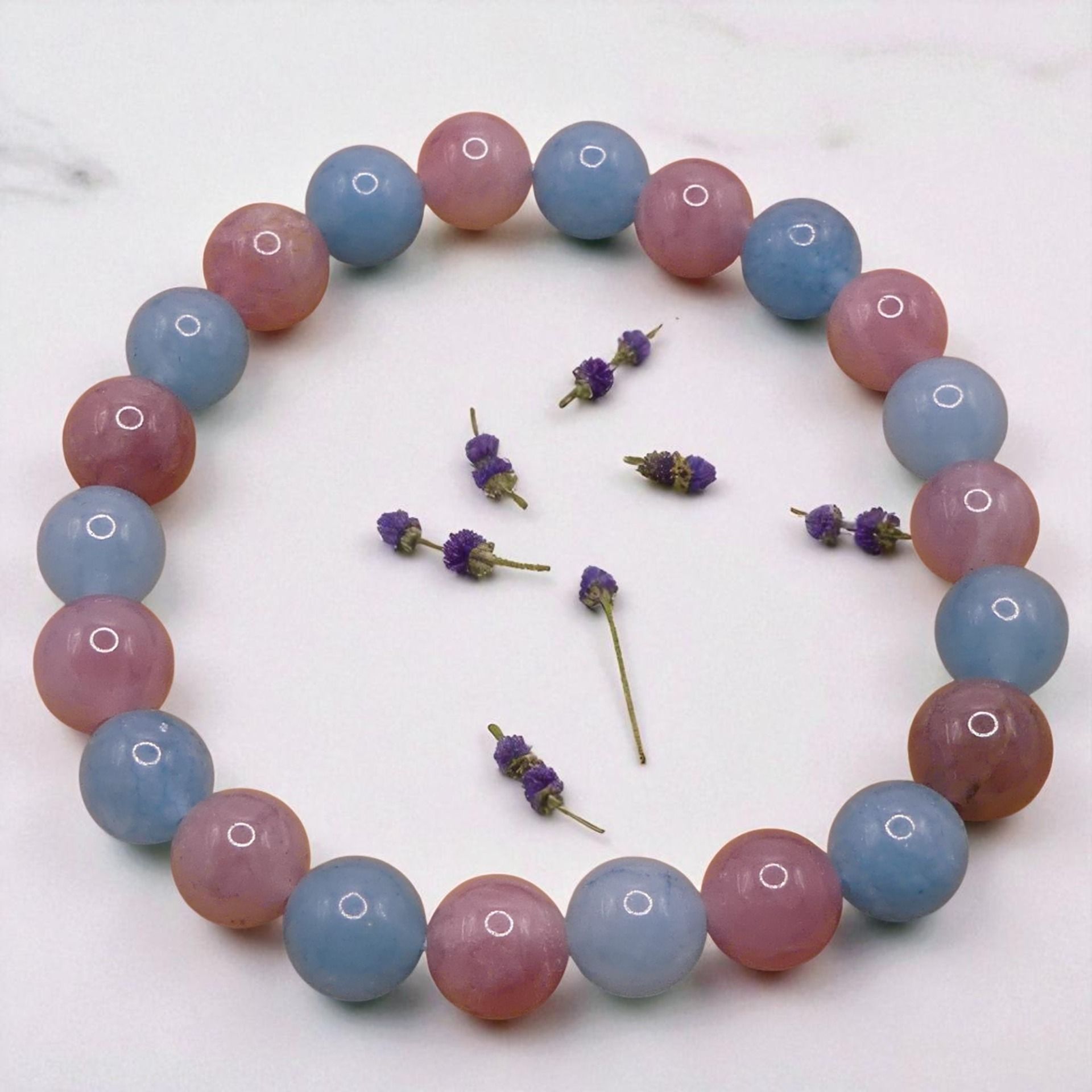 Le quartz rose, tendre et lumineux, est une pierre douce associée à l’amour inconditionnel, à la tendresse et à la guérison émotionnelle, il apaise le cœur, adoucit les blessures affectives, favorise l’estime de soi et invite à s’ouvrir à soi-même comme aux autres avec bienveillance, tandis que le quartz bleu, rare et délicat, incarne la sérénité, la clarté et la communication authentique, il calme le mental, dissipe les tensions, encourage la patience et soutient l’expression juste et sincère des émotions profondes, ensemble ils créent une alliance subtile où le rose apporte la chaleur et la douceur des sentiments tandis que le bleu offre la lucidité et la paix intérieure, cette combinaison harmonise les relations en favorisant le dialogue paisible, l’écoute réciproque et la compréhension mutuelle, dans la sphère intime comme dans les échanges quotidiens, ils agissent comme un pont entre le cœur et la parole, unissant le chakra du cœur et le chakra de la gorge dans une même vibration, idéale pour cultiver l’équilibre affectif et la communication bienveillante, utilisés en méditation, portés en bijoux ou placés dans un espace de vie, ils diffusent une énergie protectrice et réconfortante, ils inspirent la douceur, la confiance et le respect, et rappellent que l’amour véritable se vit dans la vérité exprimée sans crainte, avec authenticité et compassion, faisant de l’association du quartz rose et du quartz bleu un duo précieux pour avancer avec sérénité, apaisement et harmonie dans toutes les dimensions de l’existence.