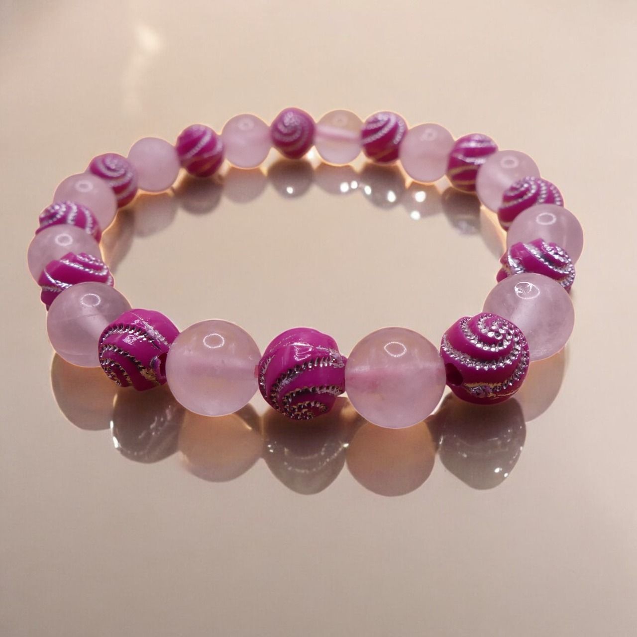 Ce bracelet en Quartz Rose sera un puissant allié pour l'amour et la guérison émotionnelle. Le Quartz Rose, la pierre de l'amour inconditionnel, ouvre le cœur à toutes formes d'amour et favorise la tendresse.