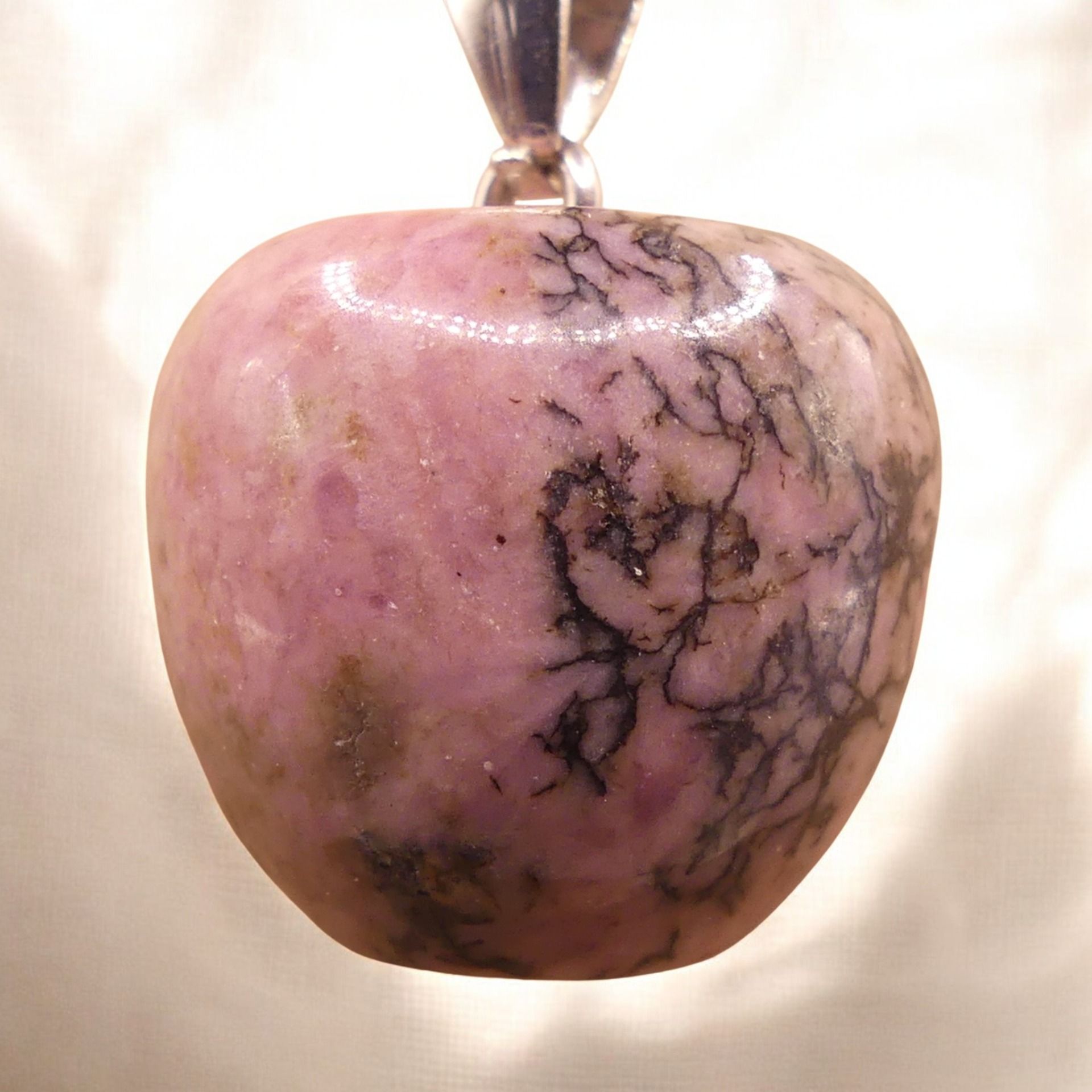 Habillez votre décolleté avec style et élégance grâce à ce sublime collier constitué d'une pierre semi-précieuse de rhodonite en forme du pomme.