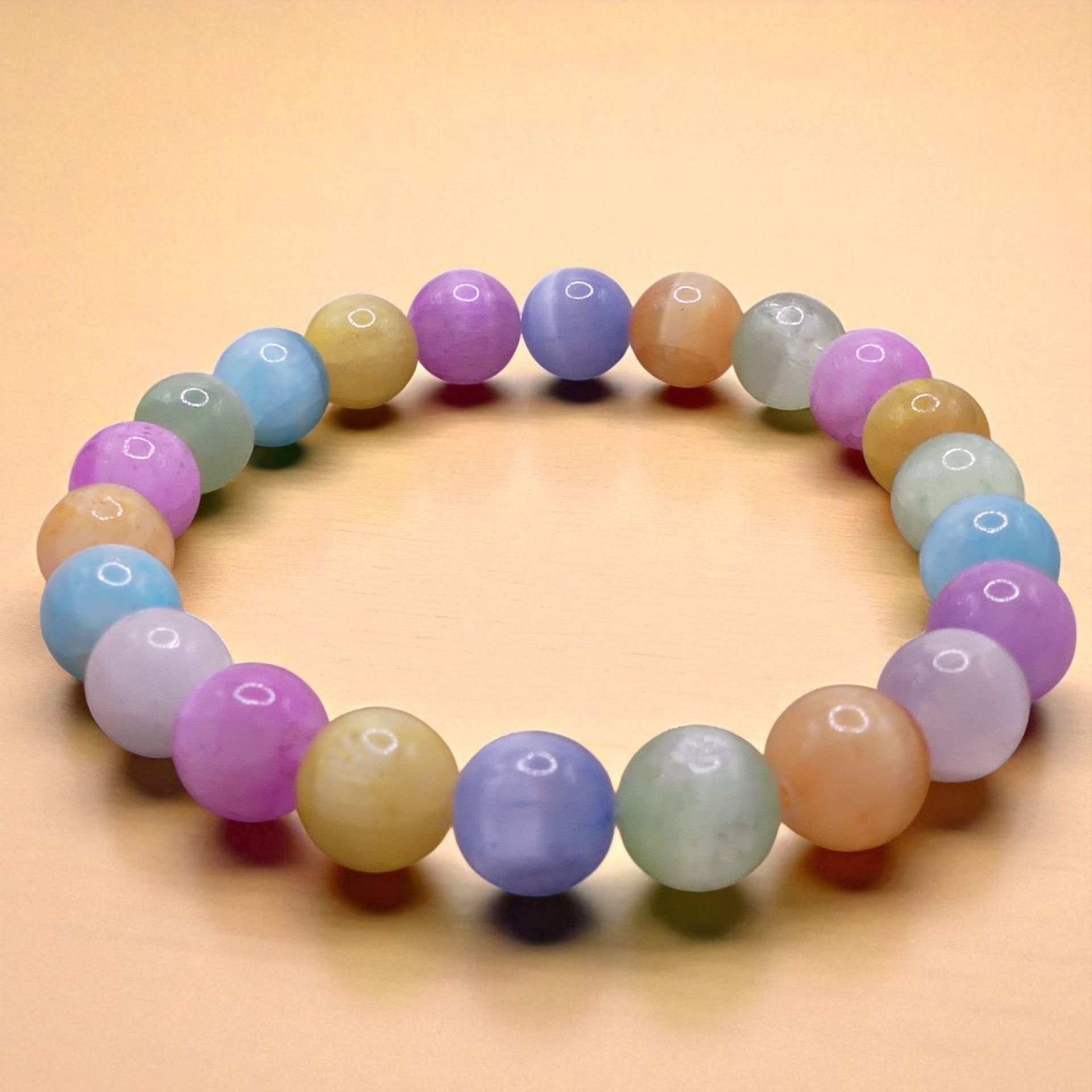 Ce bracelet en perles ronde 8 mm de diamètre est monté sur un fil élastique résistant.