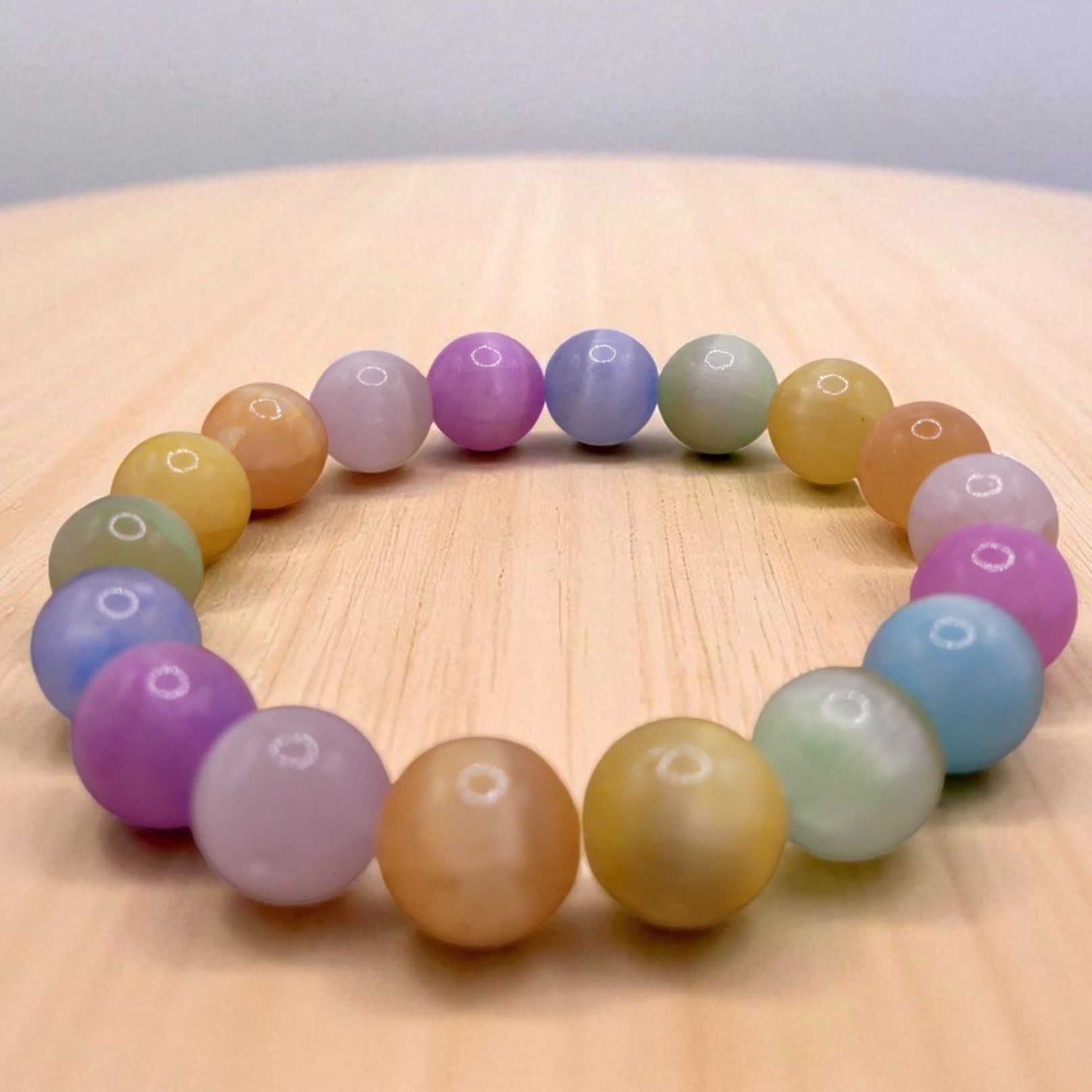 Ce bracelet en perles ronde 10 mm de diamètre est monté sur un fil élastique résistant.